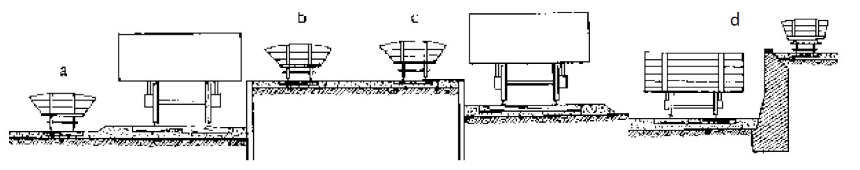 c) Umladung bei gleicher Höhe der Wagenböden, Material kann geschoben werden.
